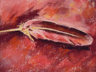 I always look for feathers when walking and usually find at least one. This was a plain brown feather found lying on the beach at Harbor Island. I chose it for another homework assignment: paint the same picture twice, using warm colors for one painting and cool for the second. Though no feather is truly plain, this one did not distract with a variety of colors or patterns.